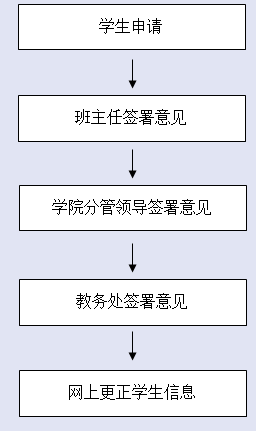 2.班主任调查核实信息修改前后是否同一人并在申请表上签署意见;3.学院分管领导签署意见并盖章后送教务处信息科;