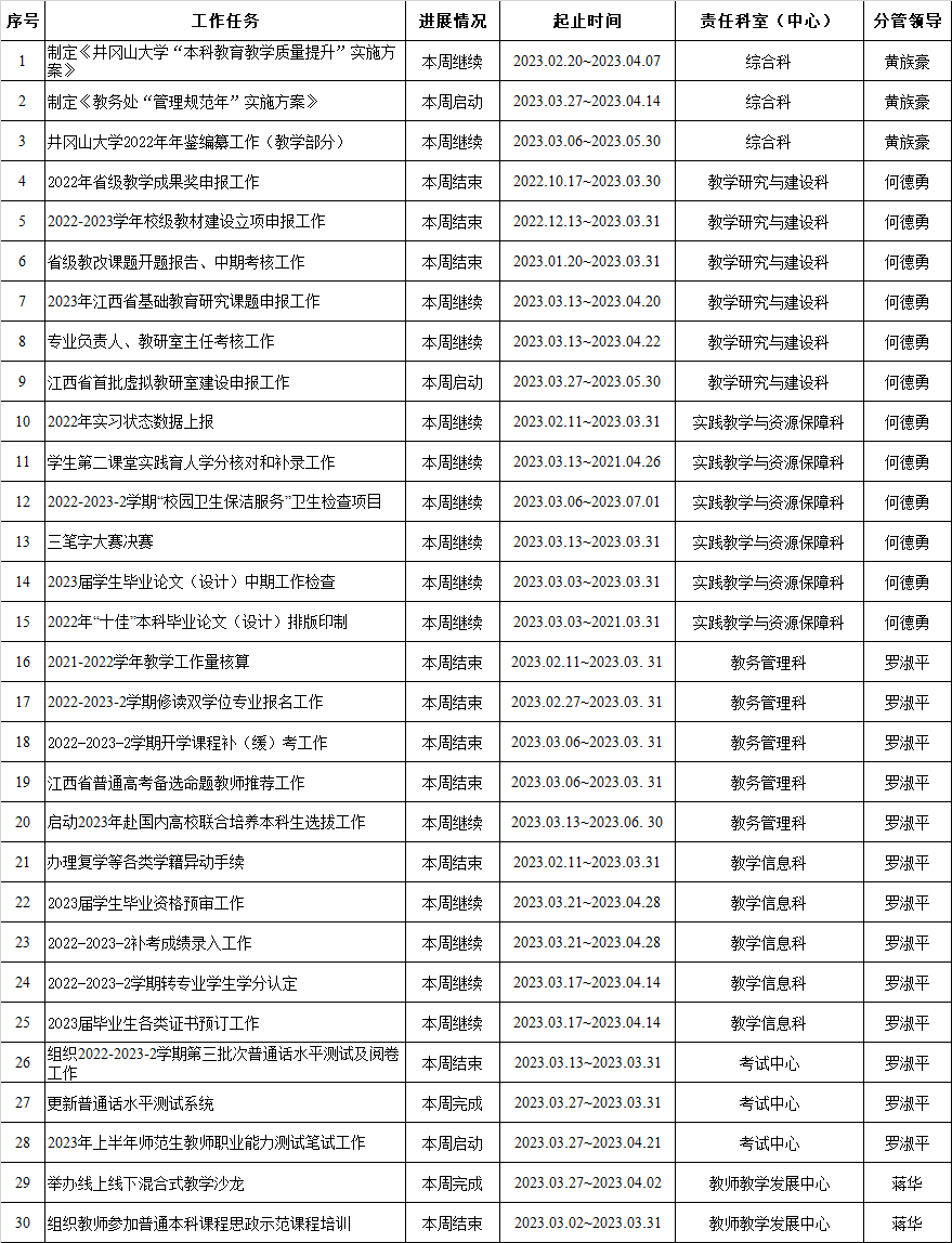 教务处、教师教学发展中心2022-2023-2学期周重点工作计划表(第7周)