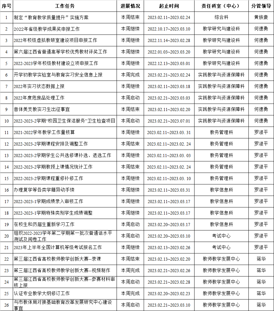 教务处、教师教学发展中心2022-2023-2学期周重点工作计划表(第2周)