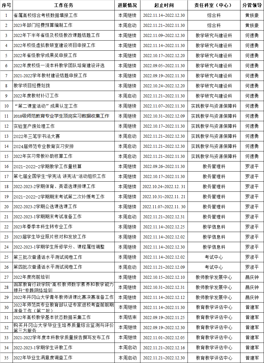 教务处、教师教学发展中心、教育教学评估中心2022-2023-1学期周重点工作计划表(第13周)