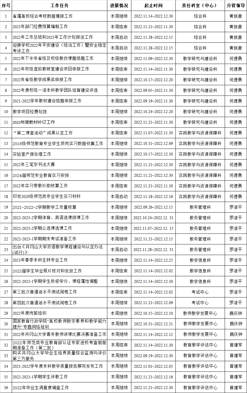 教务处、教师教学发展中心、教育教学评估中心2022-2023-1学期周重点工作计划表(第14周)