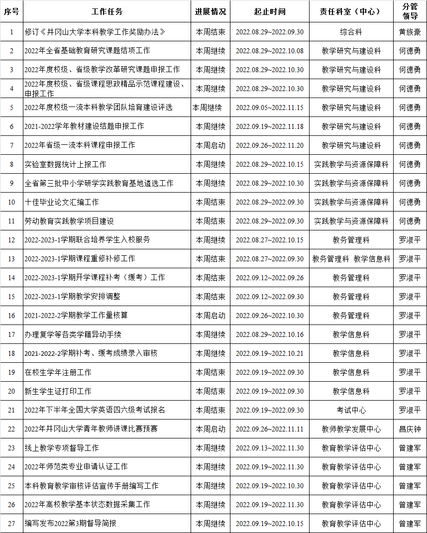 教务处、教师教学发展中心、教育教学评估中心2022-2023-1学期周重点工作计划表(第5周)