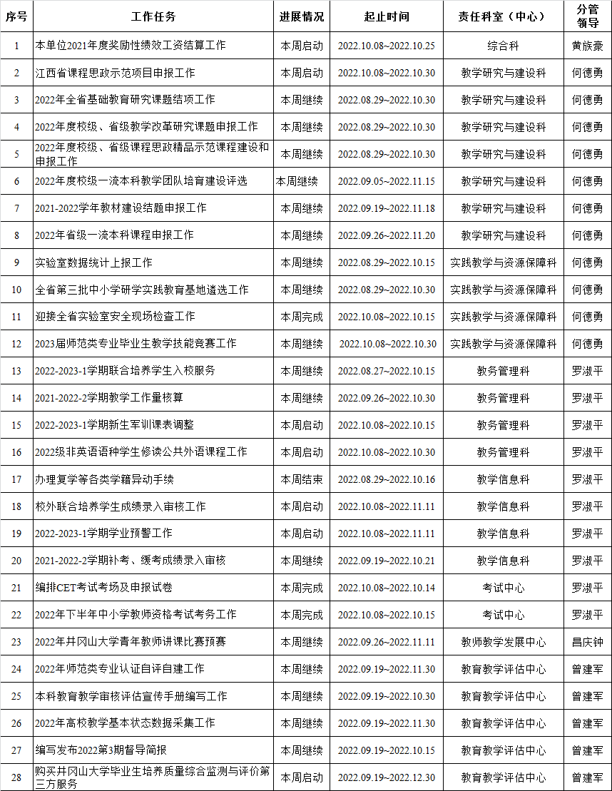 教务处、教师教学发展中心、教育教学评估中心2022-2023-1学期周重点工作计划表(第7周)