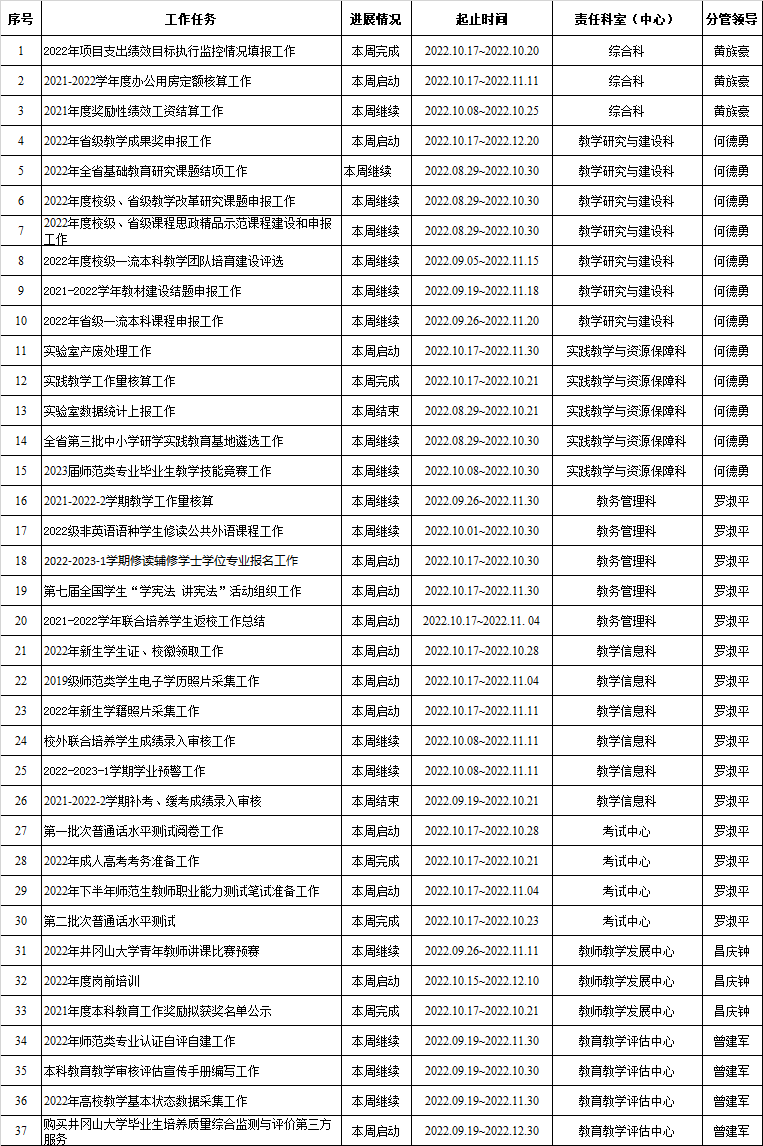教务处、教师教学发展中心、教育教学评估中心2022-2023-1学期周重点工作计划表(第8周)