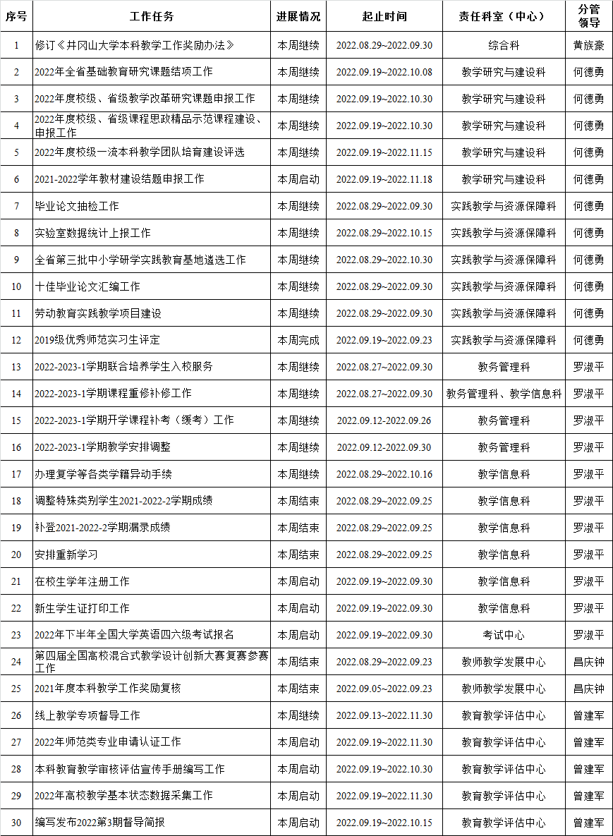 教务处、教师教学发展中心、教育教学评估中心2022-2023-1学期周重点工作计划表(第4周)