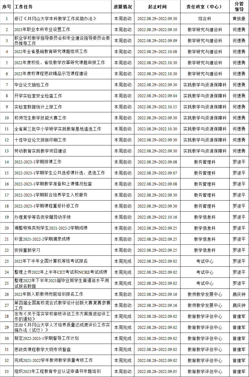 教务处、教师教学发展中心、教育教学评估中心2022-2023-1学期周重点工作计划表(第1周)