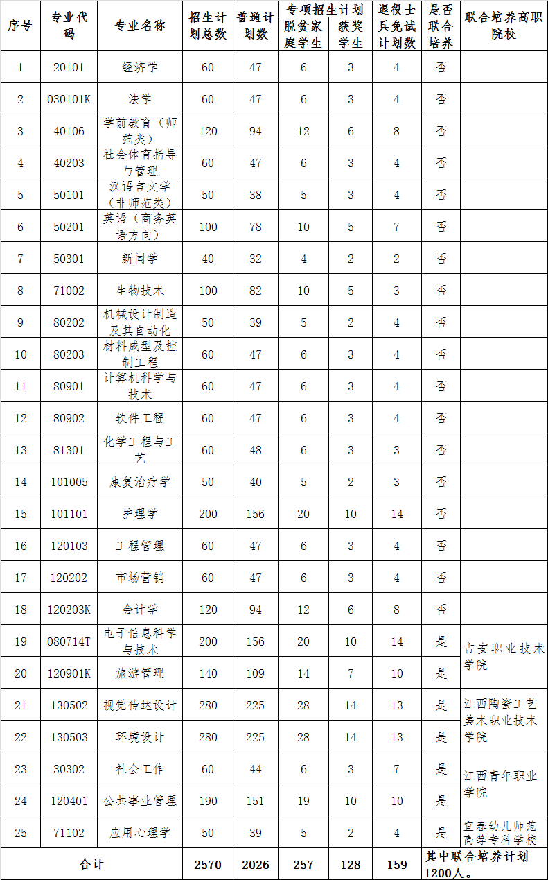 经江西省教育厅批准,我校2022年普通专升本招生计划数由原定的2270名增加至2570名。经学校研究,现将我校调整后专升本招生计划公告如下: