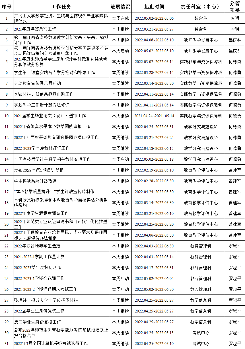 教务处2021-2022-2学期周重点工作计划表(第11周)