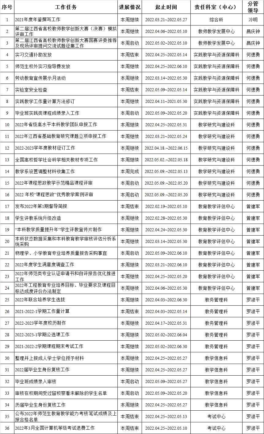 教务处2021-2022-2学期周重点工作计划表(第12周)