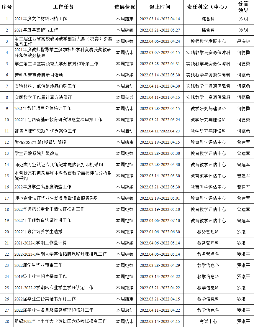 教务处2021-2022-2学期周重点工作计划表(第8周)