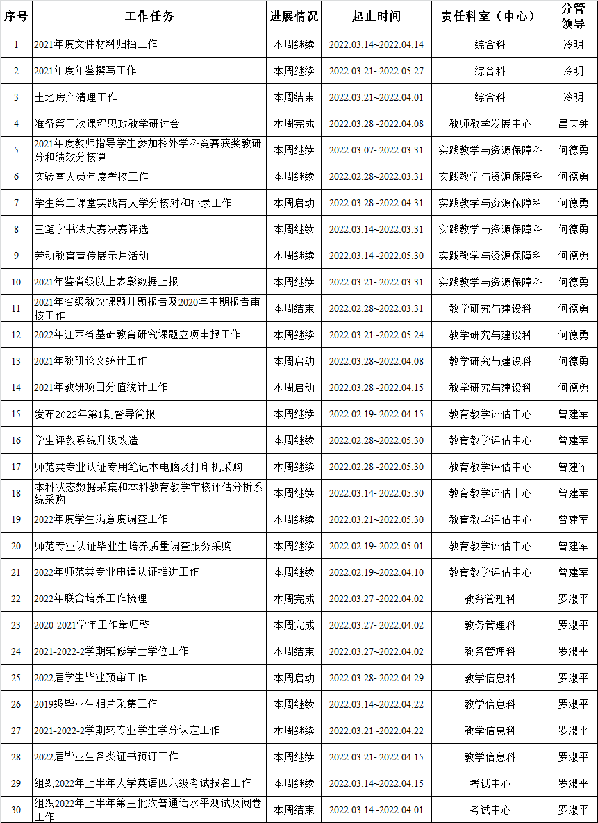 教务处2021-2022-2学期周重点工作计划表(第6周)