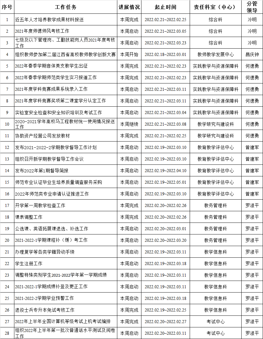 教务处2021-2022-2学期周重点工作计划表(第1周)