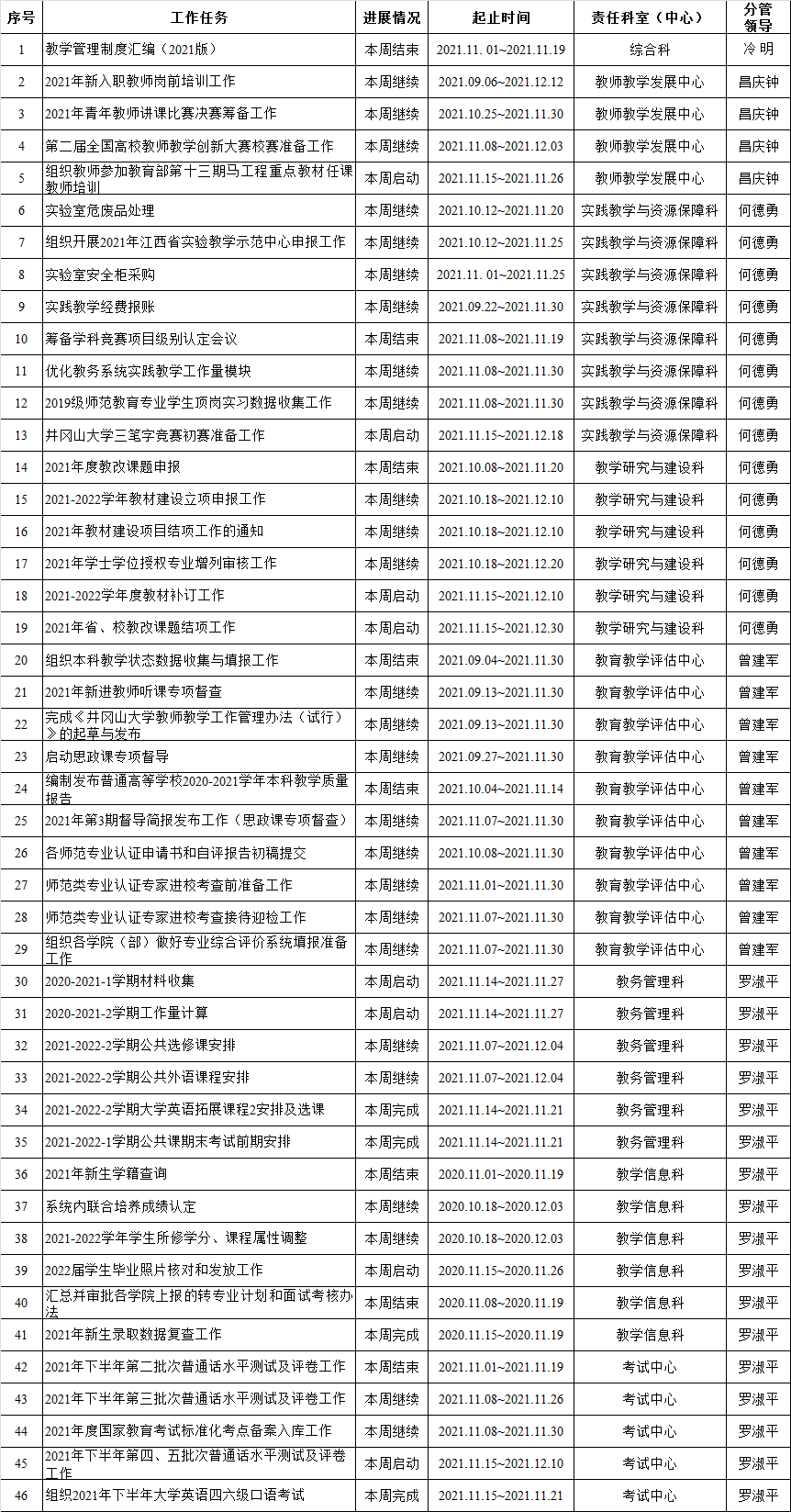 井冈山大学教务处2021-2022-1学期周重点工作计划表(第11周)