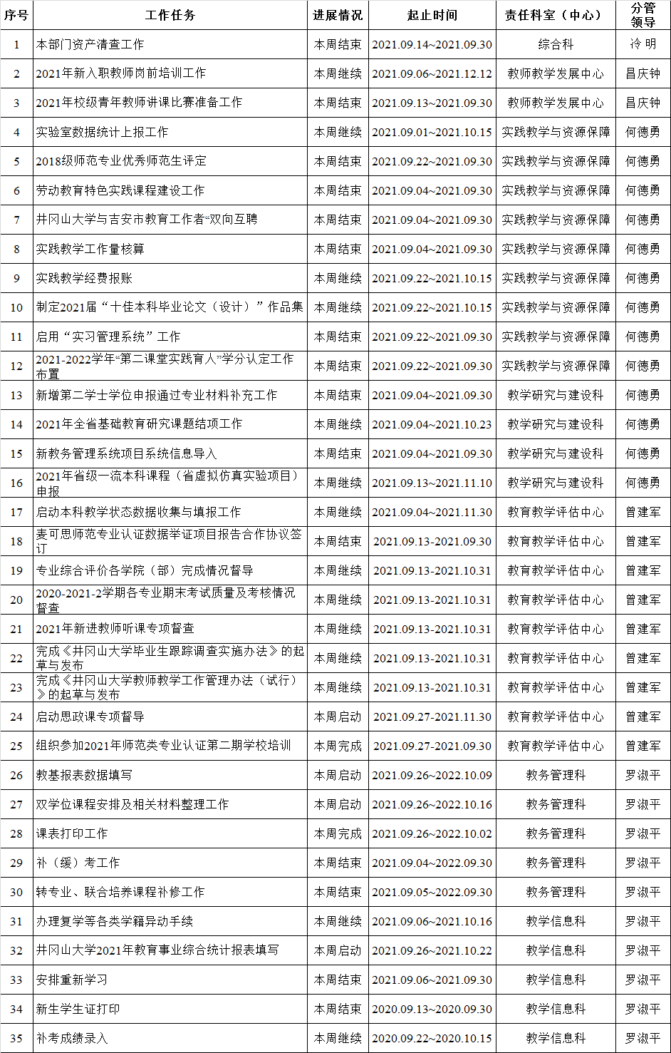 井冈山大学教务处2021-2022-1学期周重点工作计划表(第4周)