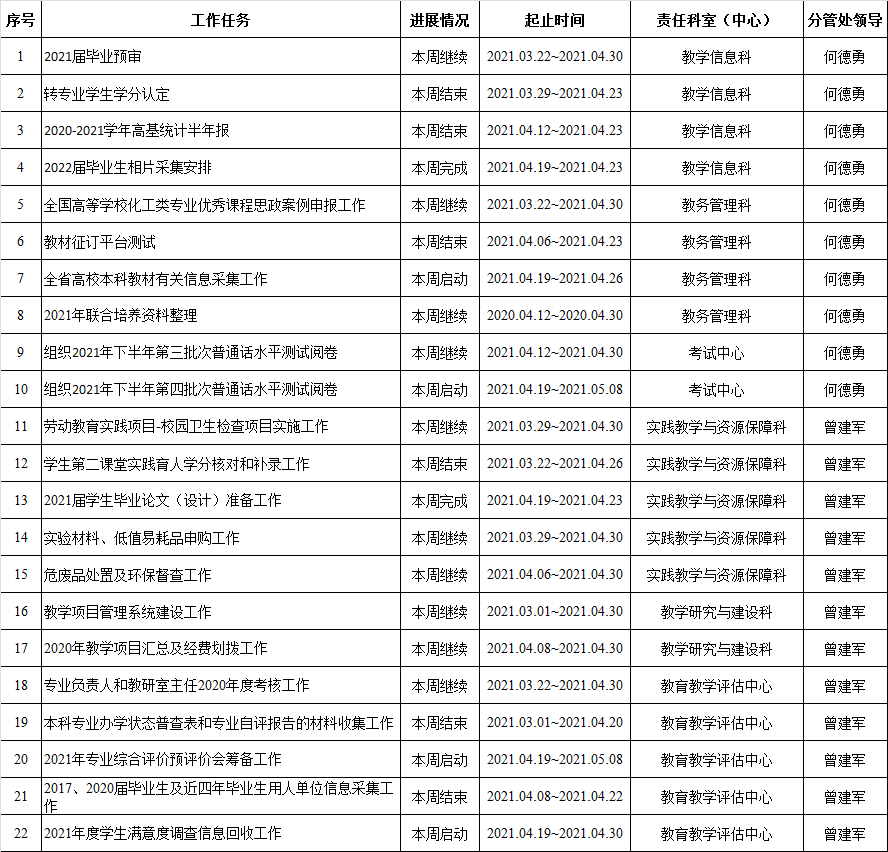 井冈山大学教务处2020-2021学年第二学期周重点工作计划表 (第8周)