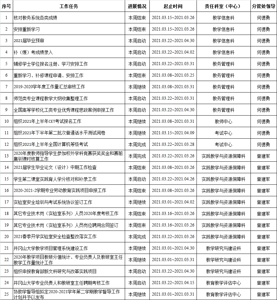 井冈山大学教务处2020-2021学年第二学期周重点工作计划表 (第4周)