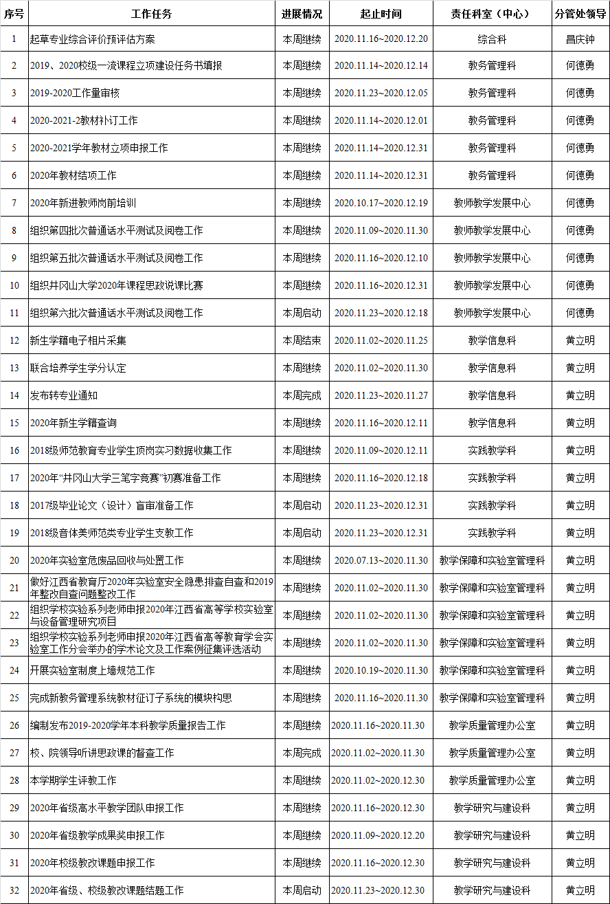 井冈山大学教务处2020-2021学年第一学期周重点工作计划表 (第11周)