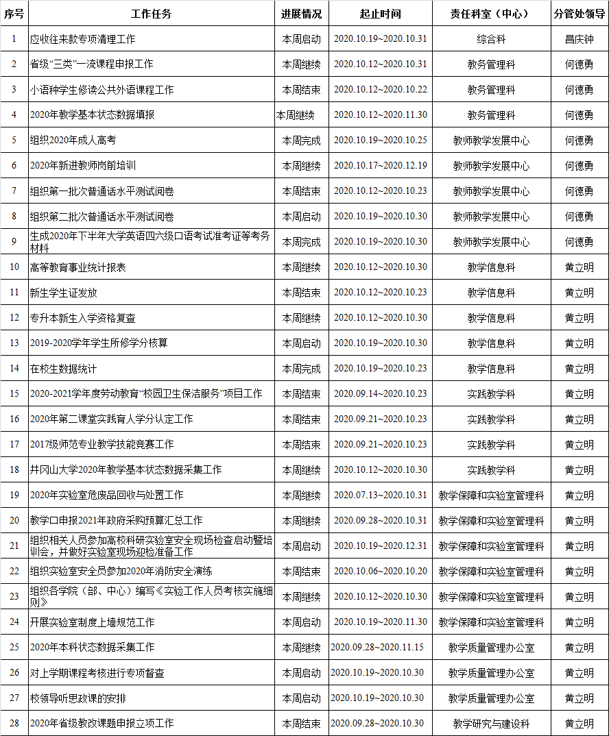 井冈山大学教务处2020-2021学年第一学期周重点工作计划表 (第6周)