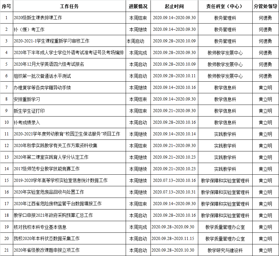 井冈山大学教务处2020-2021学年第一学期周重点工作计划表 (第3周)