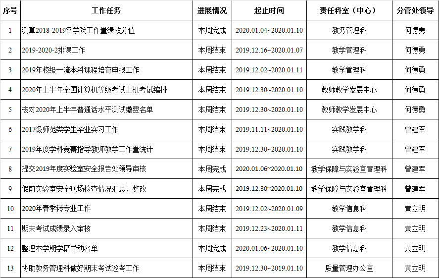 井冈山大学教务处2019-2020学年第一学期周重点工作计划表 (第19周)